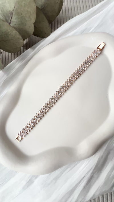 Feines Armband, welches mit Strasssteinen und goldenen Details verziert ist.