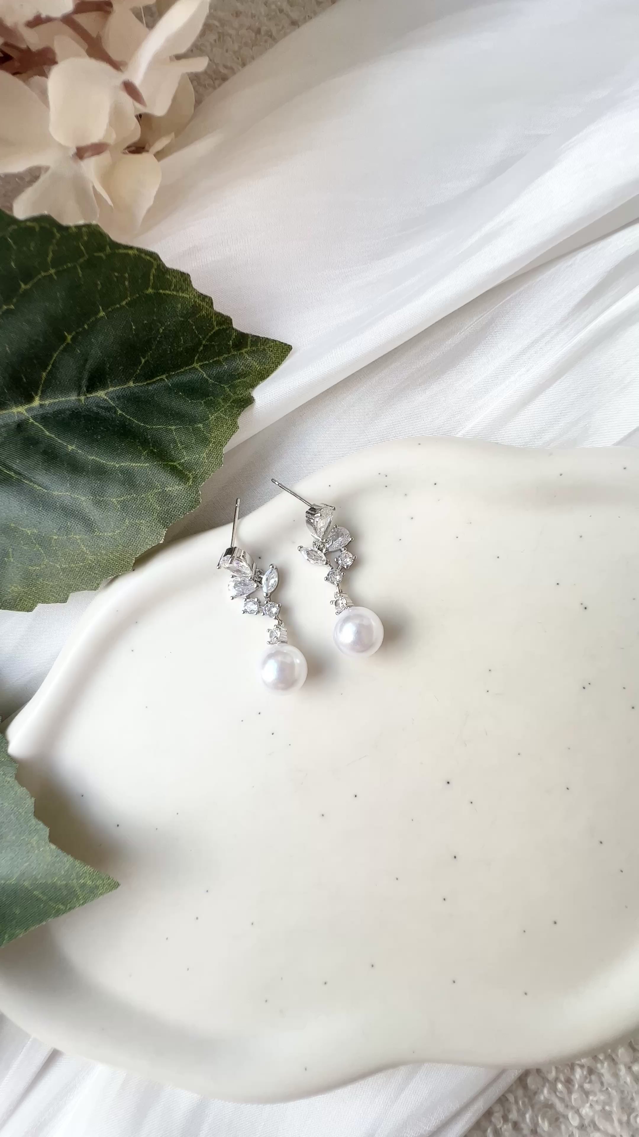 Braut Ohrringe, Silber, Cubic Zirconia, weiße Perlen, Brautschmuck, Brautohrringe