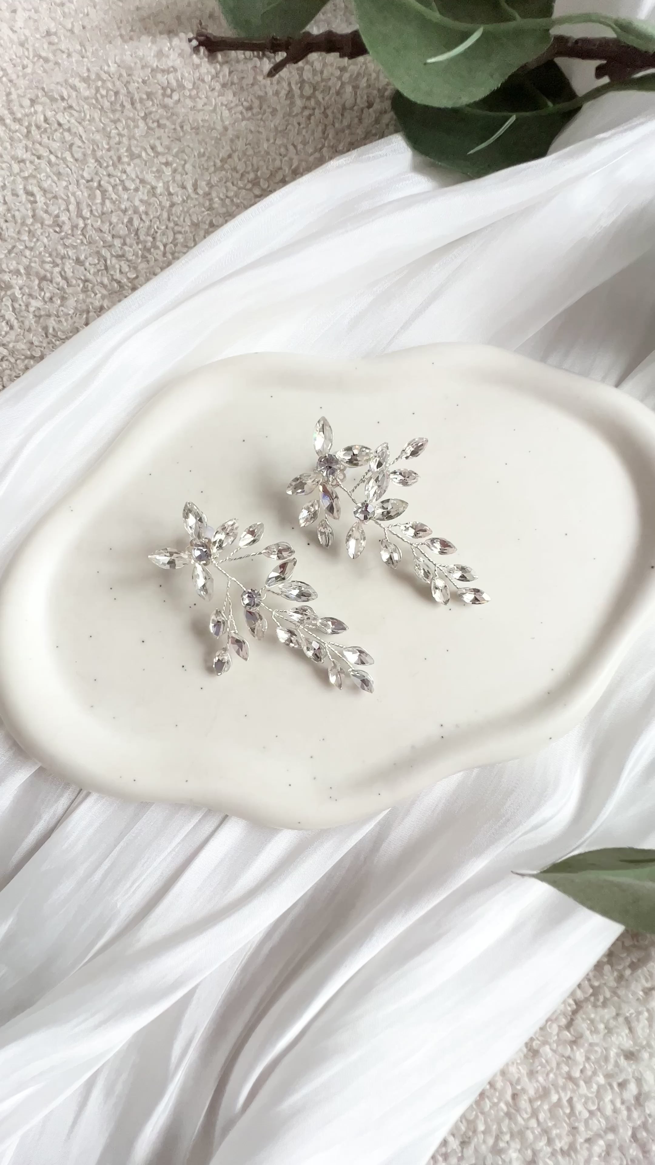 Wundervoll glänzende Brautohrringe mit vielen kleinen funkelnden Strasssteinen.