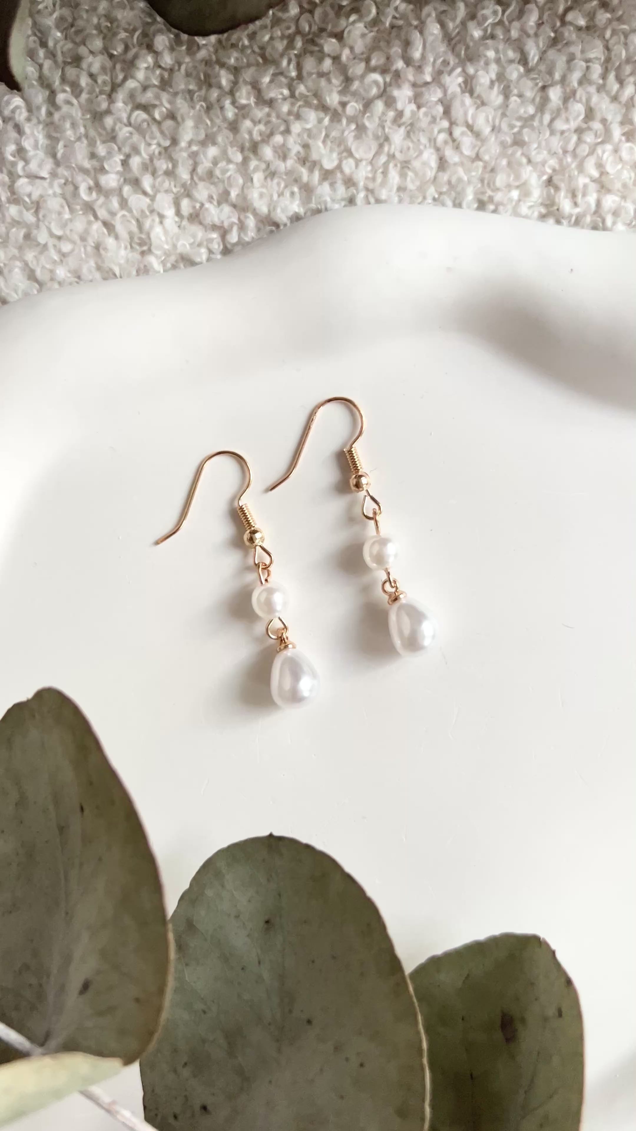 Perlenohrringe, Gold mit Weißen Perlen, Hängeohrringe, elegante Brautohrringe