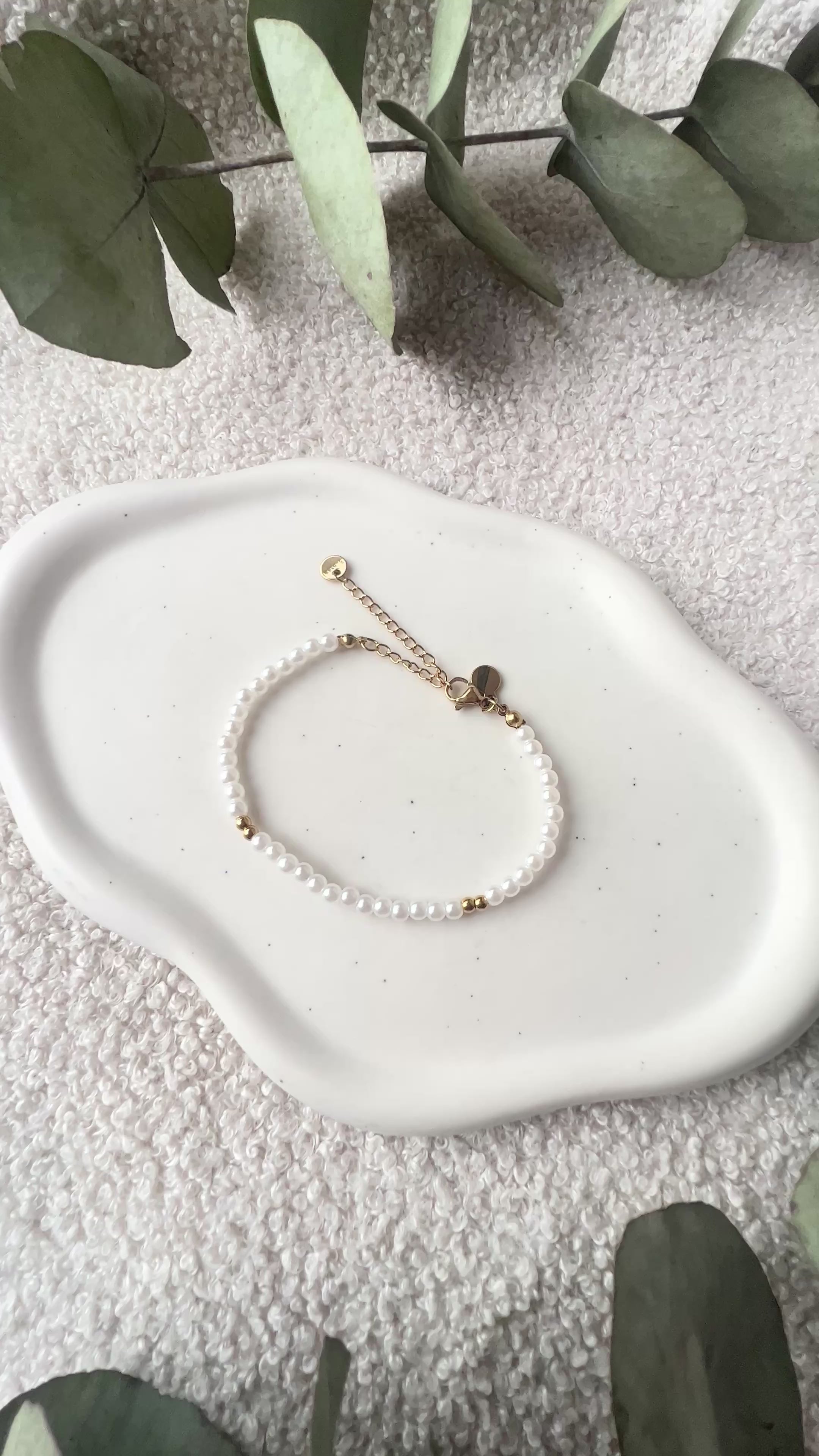 Perlenarmband, weiße und Goldene Perlen, goldener Verschluss, Perlenschmuck